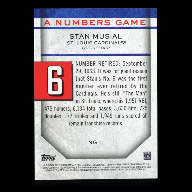 Stan Musial 2020 Topps A Numbers Game - 6 Cardinals