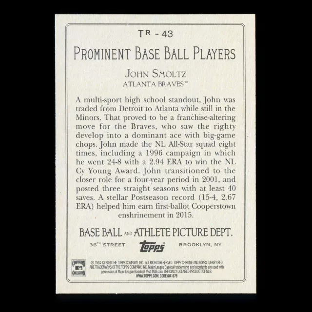 John Smoltz 2020 Topps Turkey Red Braves
