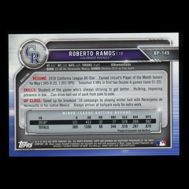 Roberto Ramos 2019 Bowman 1st Bowman Rockies