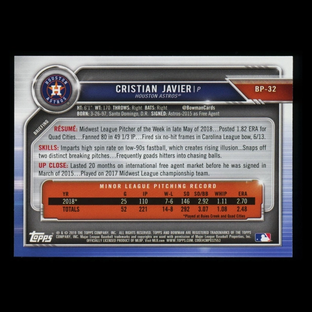 Cristian Javier 2019 Bowman 1st Bowman Astros