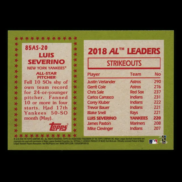 Luis Severino 2020 Topps 1985 Retro AL All Star Yankees