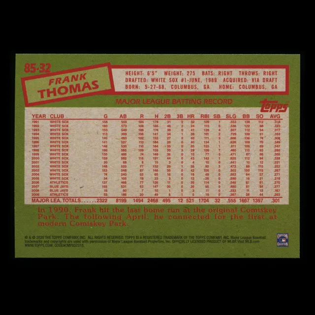 Frank Thomas 2020 Topps 1985 35th Anniversary White Sox