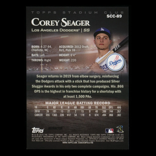 Corey Seager 2019 Stadium Club Chrome Dodgers