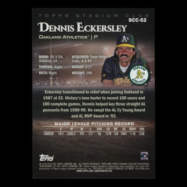 Dennis Eckersley 2019 Stadium Club Chrome Athletics