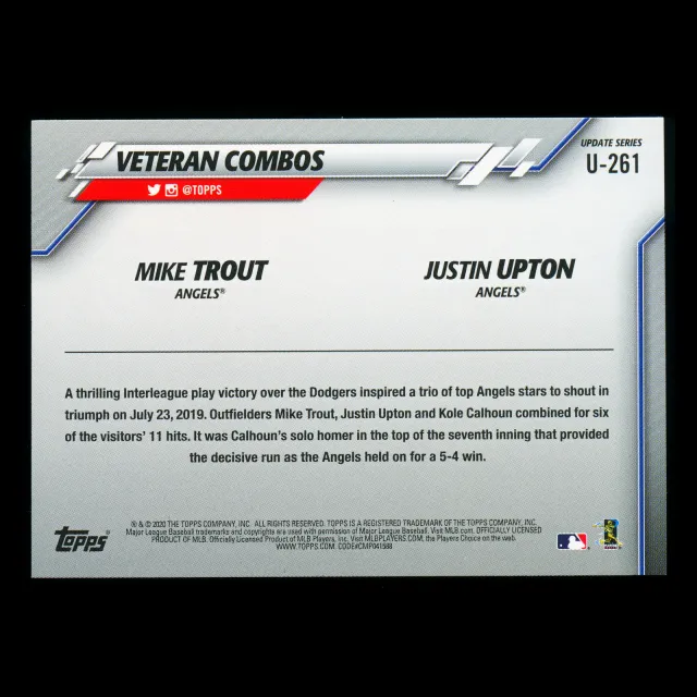 Mike Trout | Justin Upton 2020 Topps Veteran Combos Angels