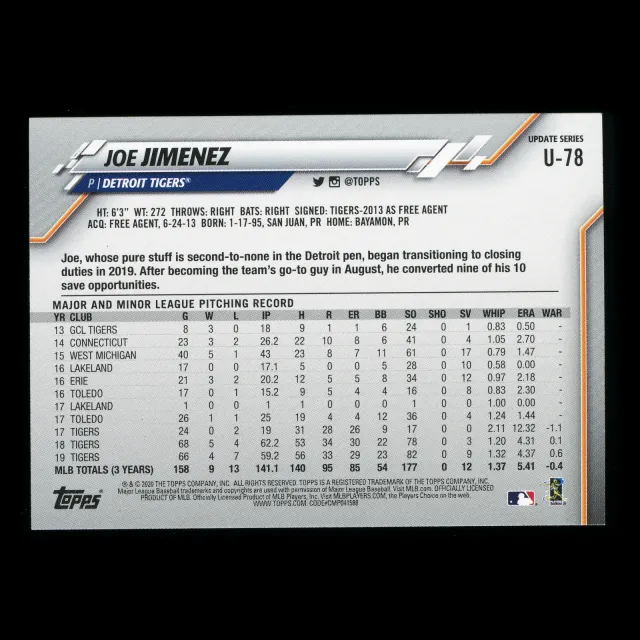 Joe Jimenez 2020 Topps Yellow Tigers