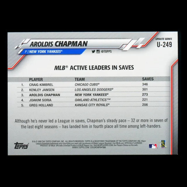 Aroldis Chapman 2020 Topps Gold Foil Yankees