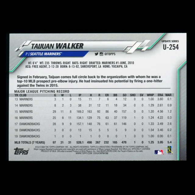 Taijuan Walker 2020 Topps Rainbow Foil Mariners