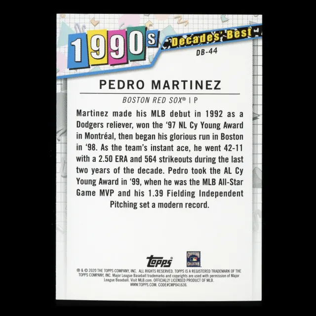 Pedro Martinez 2020 Topps Decades' Best Pitchers 1990s Red Sox