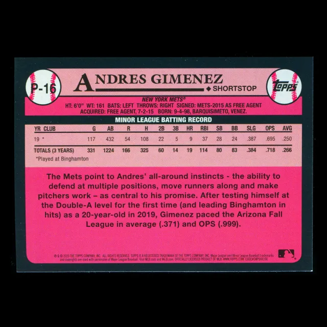 Andres Gimenez 2020 Topps 1989 Retro #1 Prospect Mets