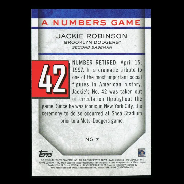 Jackie Robinson 2020 Topps A Numbers Game - 42 Dodgers