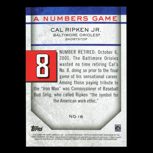 Cal Ripken Jr. 2020 Topps A Numbers Game - 8 Orioles