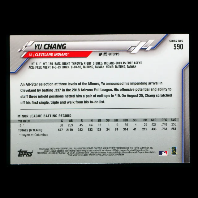 Yu Chang RC 2020 Topps Rookie Indians