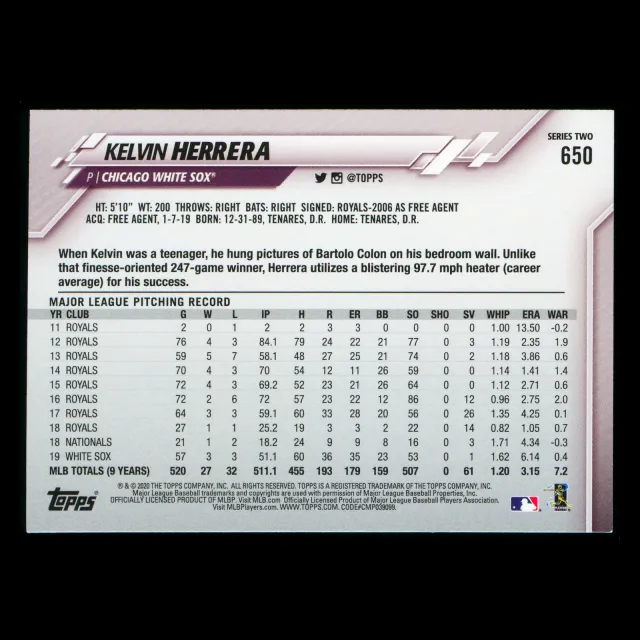 Kelvin Herrera 2020 Topps Gold Foil White Sox