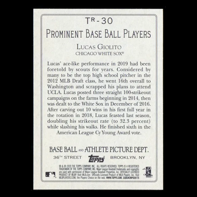 Lucas Giolito 2020 Topps Turkey Red White Sox