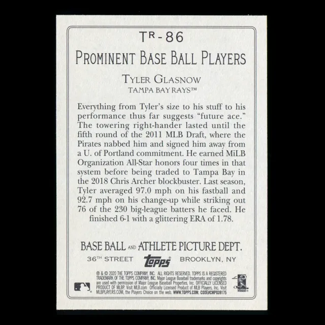 Tyler Glasnow 2020 Topps Turkey Red Rays