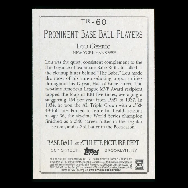 Lou Gehrig 2020 Topps Turkey Red Yankees