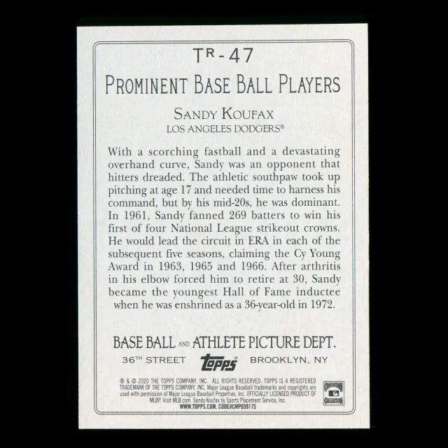 Sandy Koufax 2020 Topps Turkey Red Dodgers