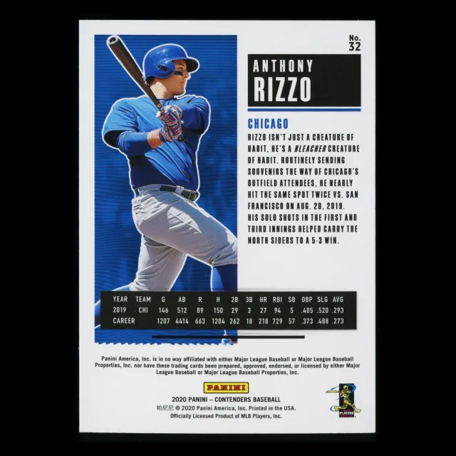 Anthony Rizzo 2020 Contenders Season Ticket Purple Cubs