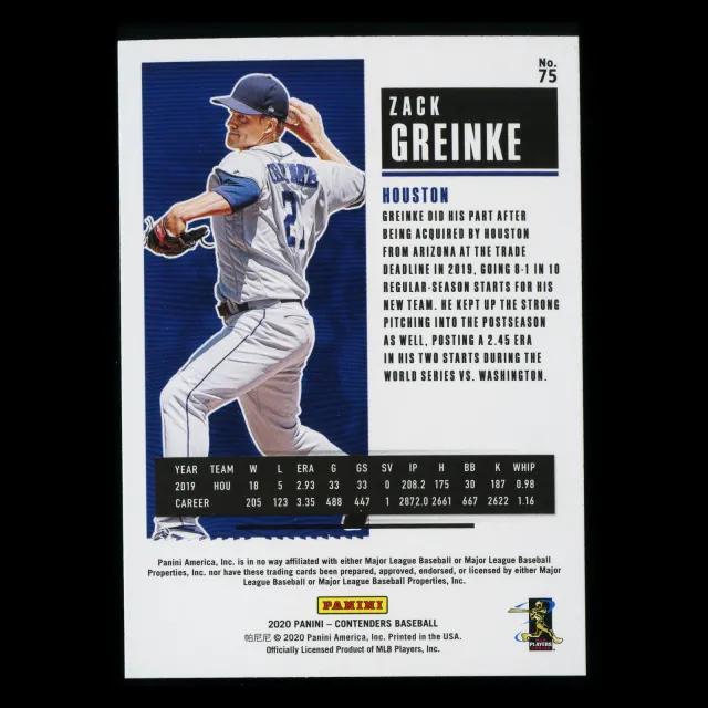 Zack Greinke 2020 Contenders Season Ticket Purple Astros