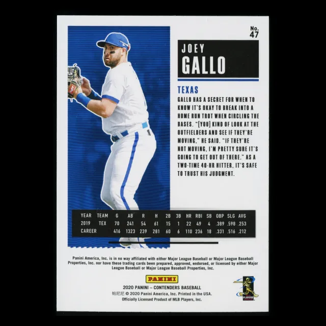 Joey Gallo 2020 Contenders Season Ticket Purple Rangers