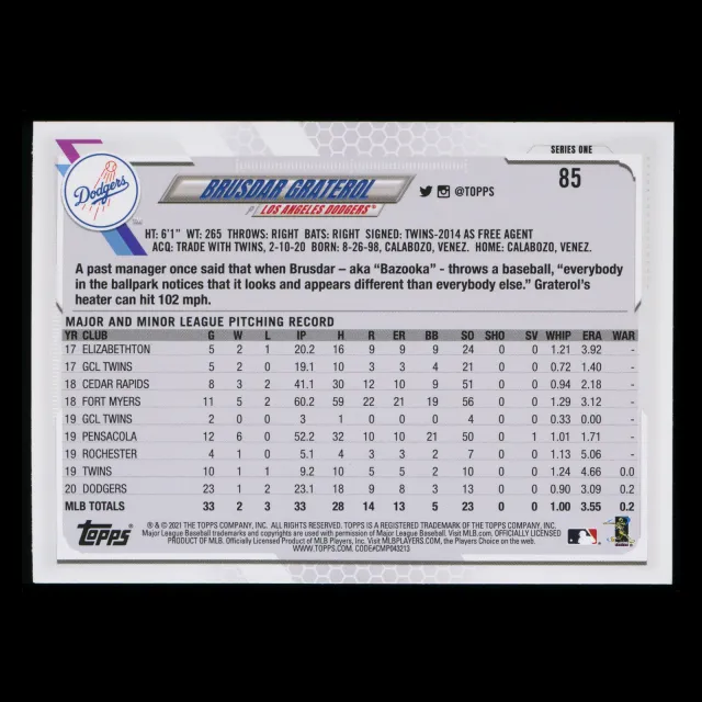 Brusdar Graterol 2021 Topps Future Stars Dodgers