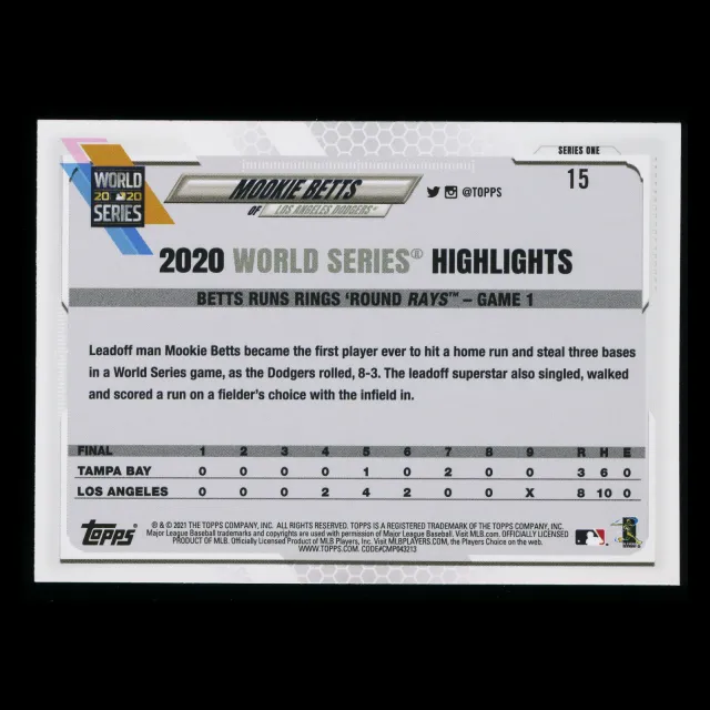 Mookie Betts 2021 Topps 2020 World Series Dodgers