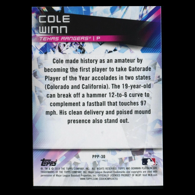 Cole Winn 2019 Bowman Platinum Prismatic Prodigies Rangers