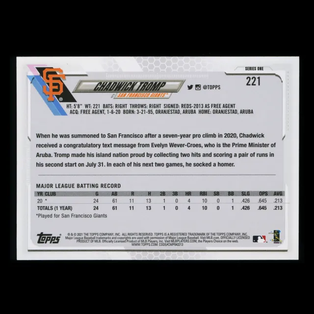Chadwick Tromp RC 2021 Topps Rookie Giants
