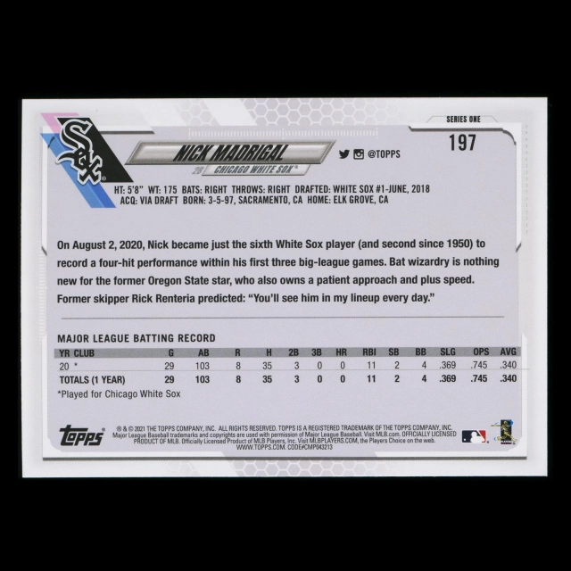 Nick Madrigal RC 2021 Topps Rookie White Sox