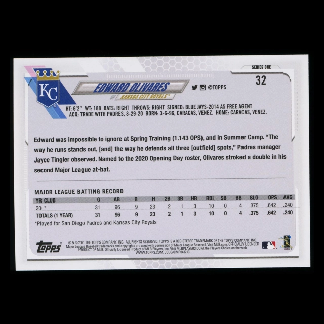 Edward Olivares RC 2021 Topps Rookie Royals