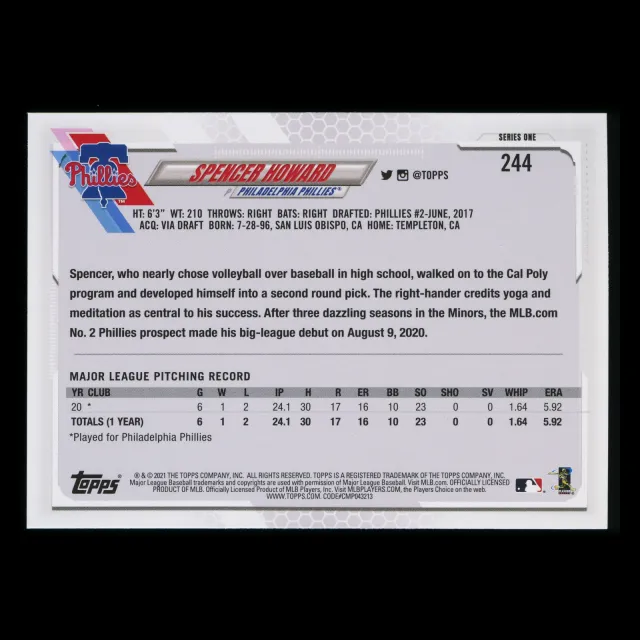Spencer Howard RC 2021 Topps Rookie Phillies