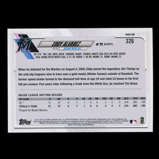 Eddy Alvarez RC 2021 Topps Rookie Marlins