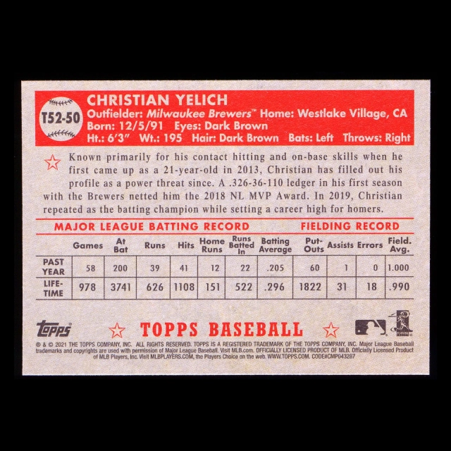Christian Yelich 2021 Topps '52 Retro Brewers