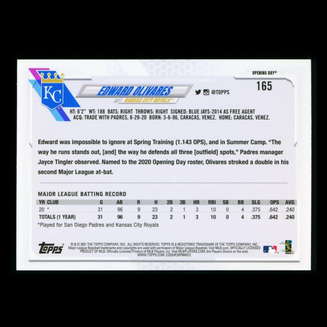Edward Olivares RC 2021 Topps Opening Day Rookie Royals