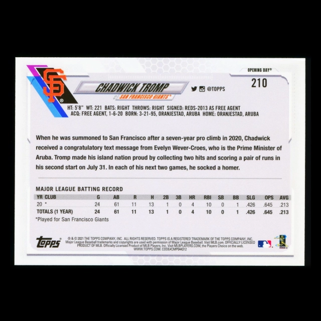 Chadwick Tromp RC 2021 Topps Opening Day Rookie Giants