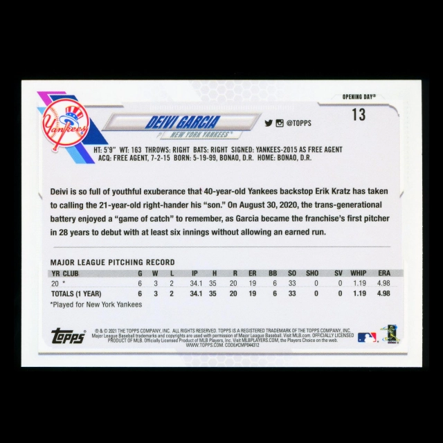 Deivi Garcia RC 2021 Topps Opening Day Rookie Yankees