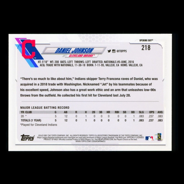 Daniel Johnson RC 2021 Topps Opening Day Rookie Indians