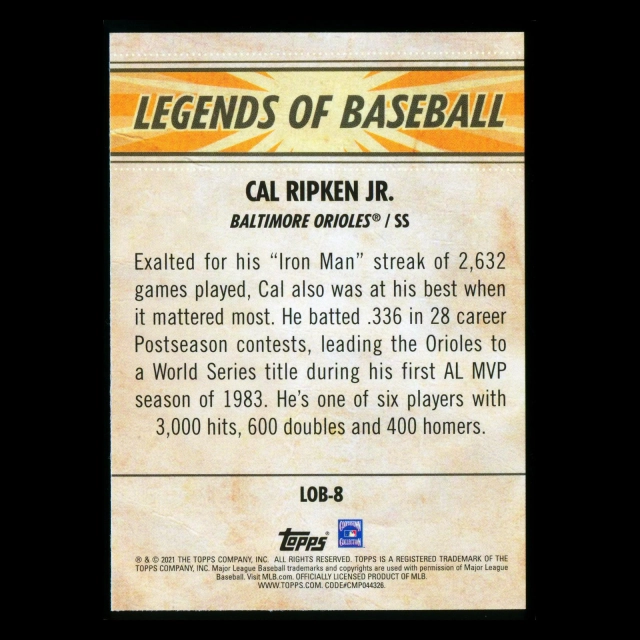 Cal Ripken Jr. 2021 Topps Opening Day Legends of Baseball Orioles