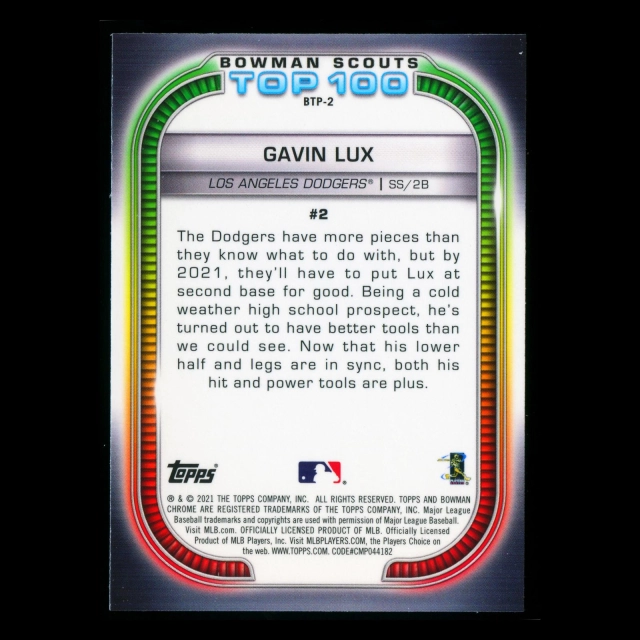 Gavin Lux 2021 Bowman Chrome Scouts Top 100 | #2 Dodgers