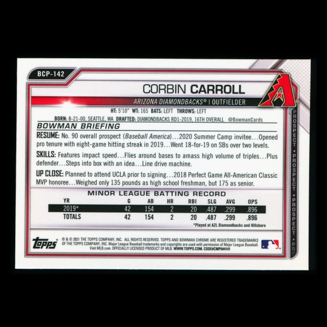 Corbin Carroll 2021 Bowman Chrome Prospect Diamondbacks