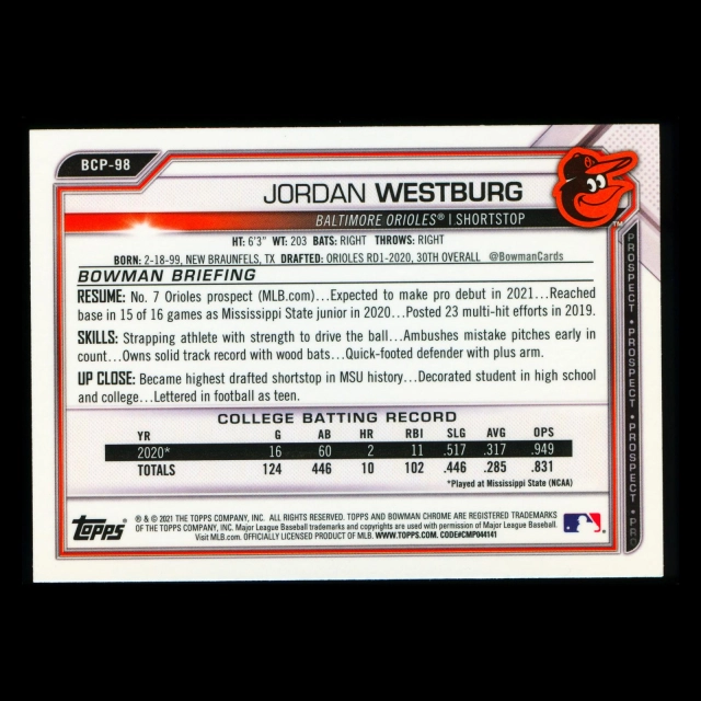 Jordan Westburg 2021 Bowman Chrome Prospect Orioles
