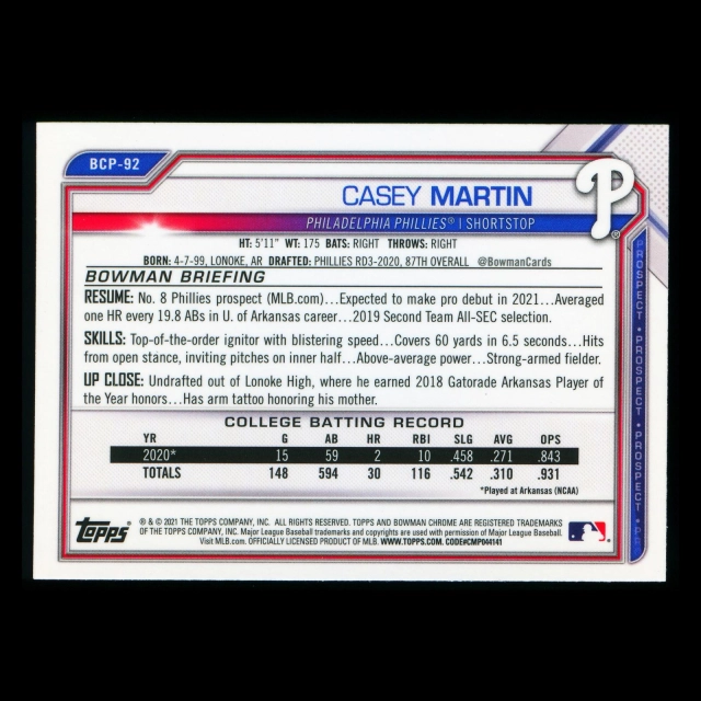 Casey Martin 2021 Bowman Chrome Prospect Phillies