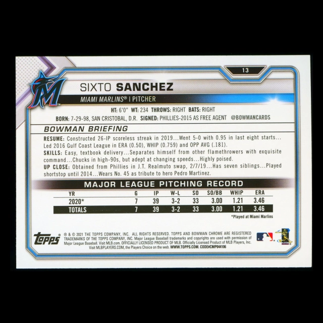 Sixto Sanchez RC 2021 Bowman Rookie Marlins