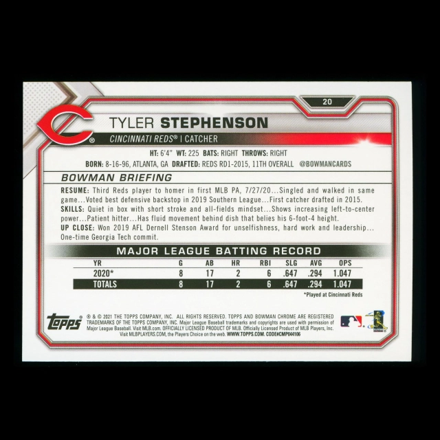 Tyler Stephenson RC 2021 Bowman Rookie Reds