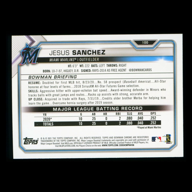 Jesus Sanchez RC 2021 Bowman Rookie Marlins