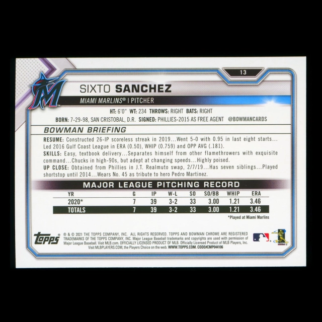 Sixto Sanchez RC 2021 Bowman Rookie Marlins