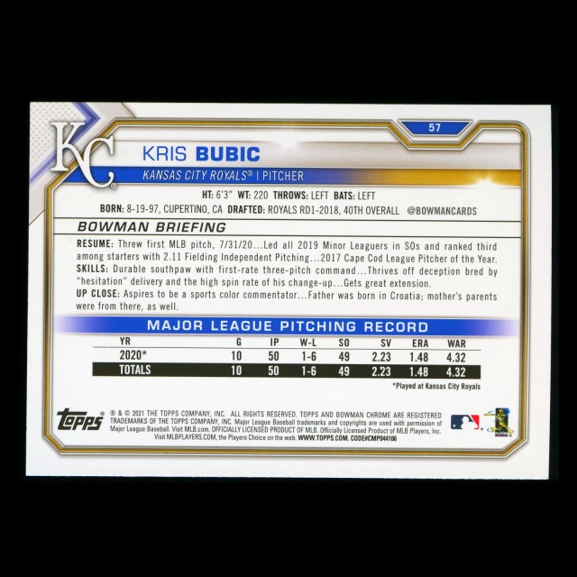 Kris Bubic RC 2021 Bowman Rookie Royals