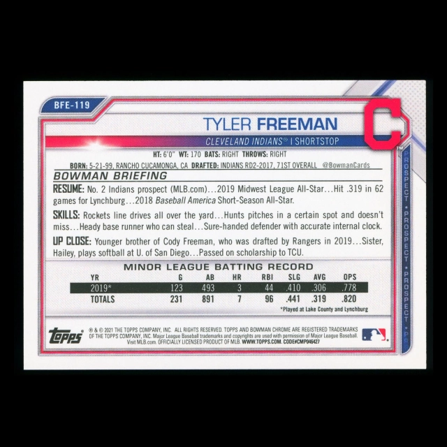 Tyler Freeman 2021 Bowman Prospect 1st Edition Indians