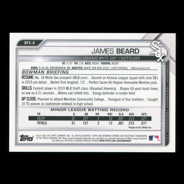 James Beard 2021 Bowman Prospect 1st Edition White Sox
